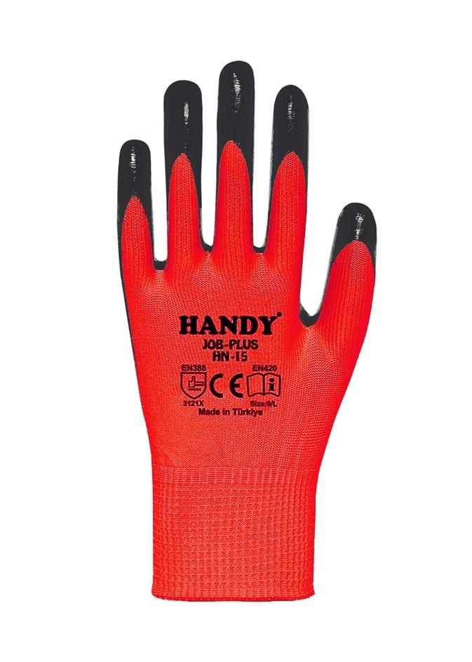 HN-15 Job-Plus Kırmızı Nitril Eldiven, zorlu iş ortamları ve endüstriyel kullanımlar için özel olarak tasarlanmış premium nitril eldivendir.