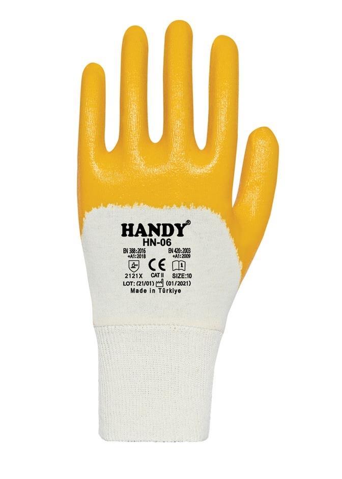 HN-06 Sarı Nitril Kaplamalı Eldiven, endüstriyel iş güvenliği için tasarlanmış profesyonel bir eldivendir.